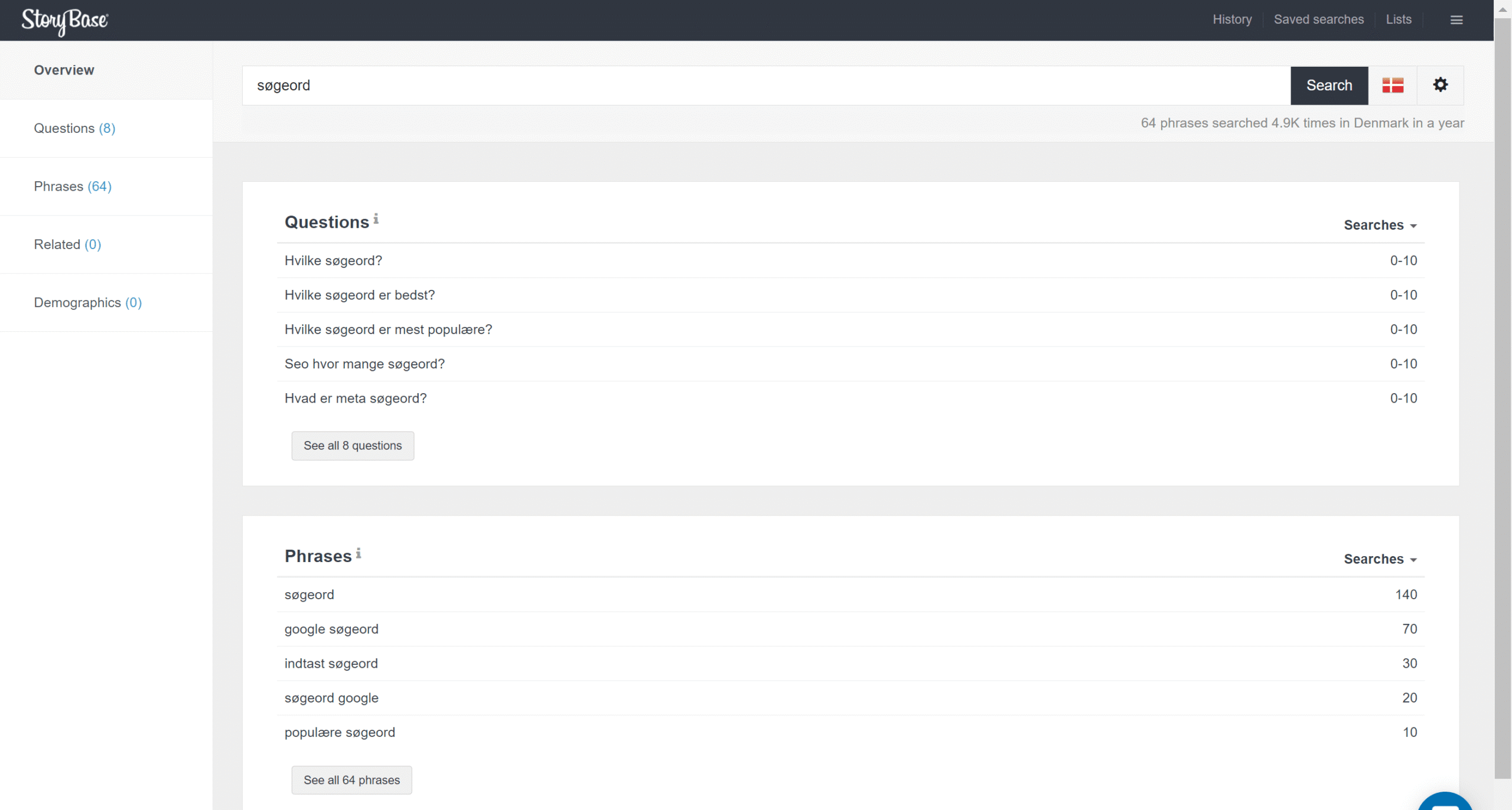 Storybase er et danskudviklet værktøj, somgiver masser af spændende information om folks søgninger og hvad mænd og kvinder i de forskellige aldersgrupper søger på.