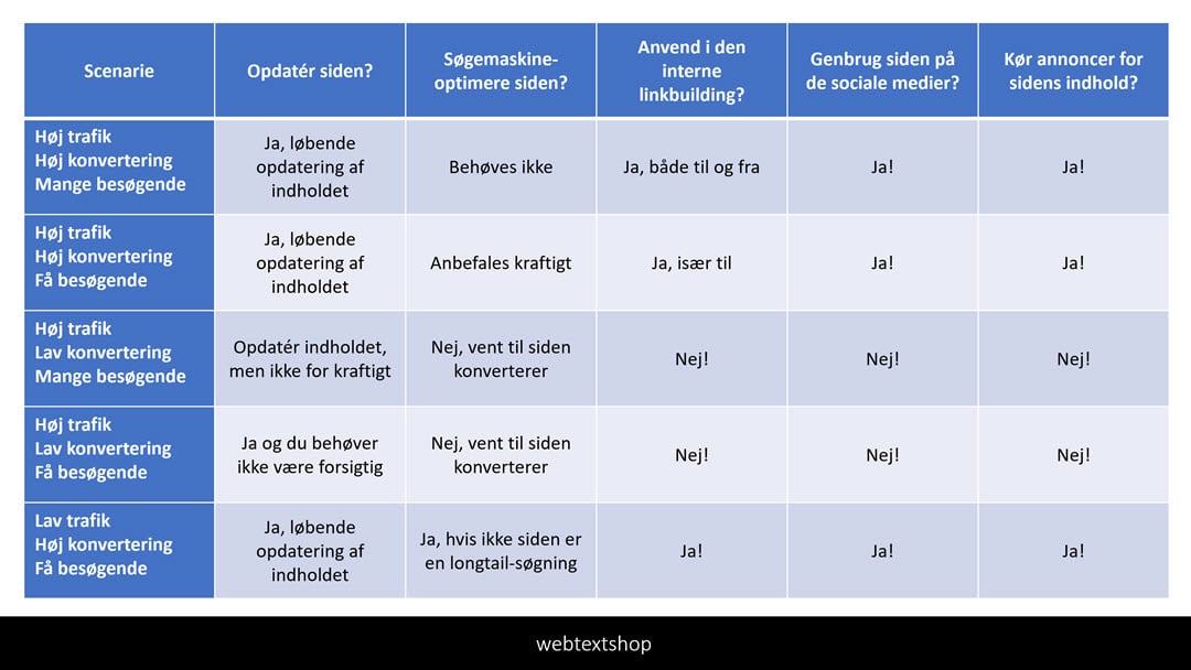 Her får du det samlede overblik over, hvordan du kan optimere eller genbruge dit indhold.