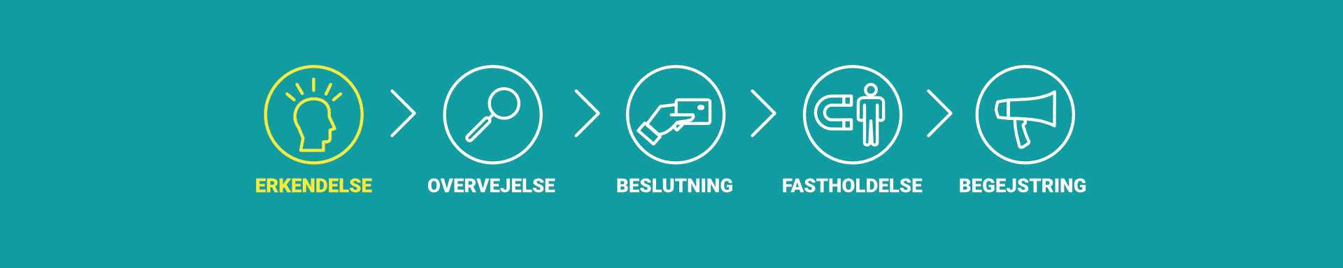 Erkendelsesfasen er dér, hvor kundeemnet opdager, at han eller hun oplever nogle symptomer, problemer eller udfordringer. Dem giver vedkommende sig til at søge efter løsningsforslag på.