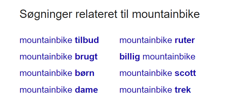 Du kan også bruge de søgefraser, du finder som links til relaterede søgninger nederst på den første side i søgeresultaterne.